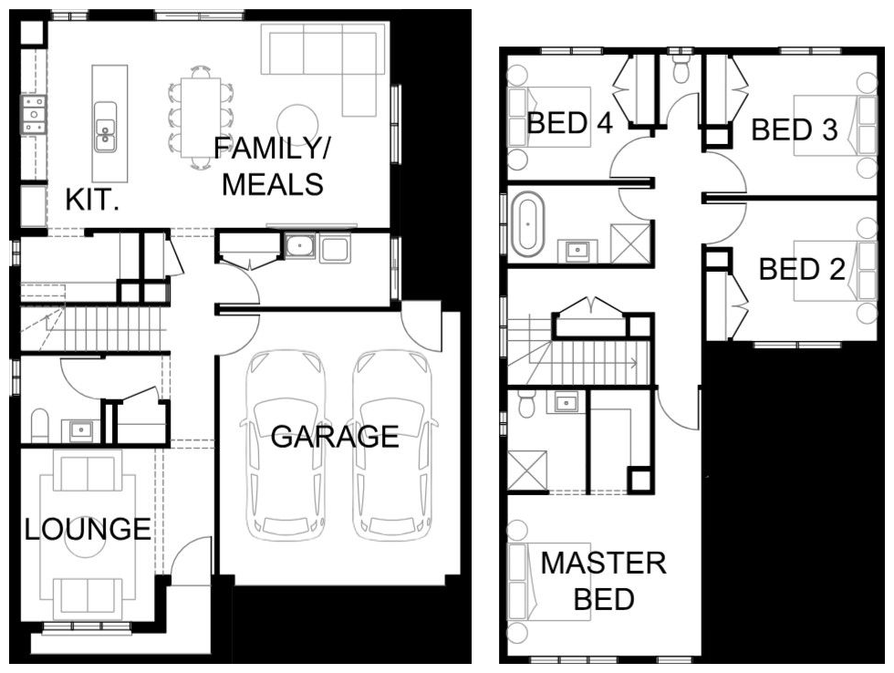 - 2590mm ceiling height to ground floor & first floor of double storey homes